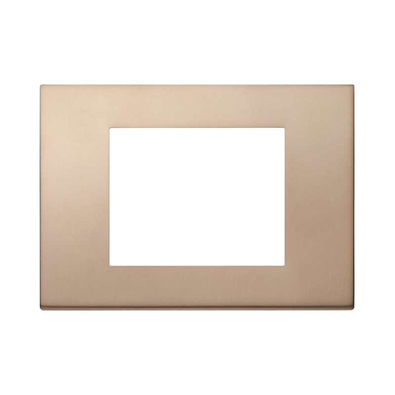 Декоративна рамка 3 модула Metal Bronze от серия LINEA. Премиум усещане чрез рамка от цинк-титаниева сплав, проектирана за висока устойчивост и екосъобразност. С PVD покритие, което подчертава металическия блясък, елегантност и луксозен завършек.