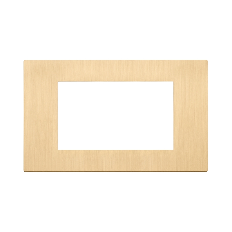 Декоративна рамка 4 модула Metal Brushed Gold от серия LINEA. Премиум усещане чрез рамка от цинк-титаниева сплав, проектирана за висока устойчивост и екосъобразност. С PVD покритие, което подчертава металическия блясък, елегантност и луксозен завършек.