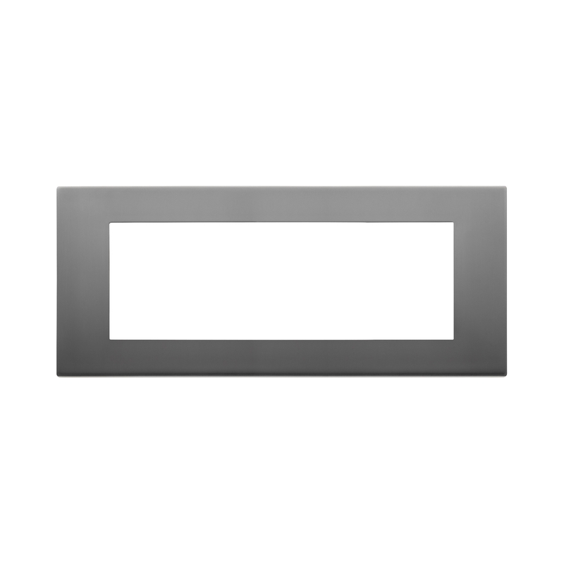 Декоративна рамка 7 модула Metal Satin Inox от серия LINEA. Премиум усещане чрез рамка от цинк-титаниева сплав, проектирана за висока устойчивост и екосъобразност. С PVD покритие, което подчертава металическия блясък, елегантност и луксозен завършек.