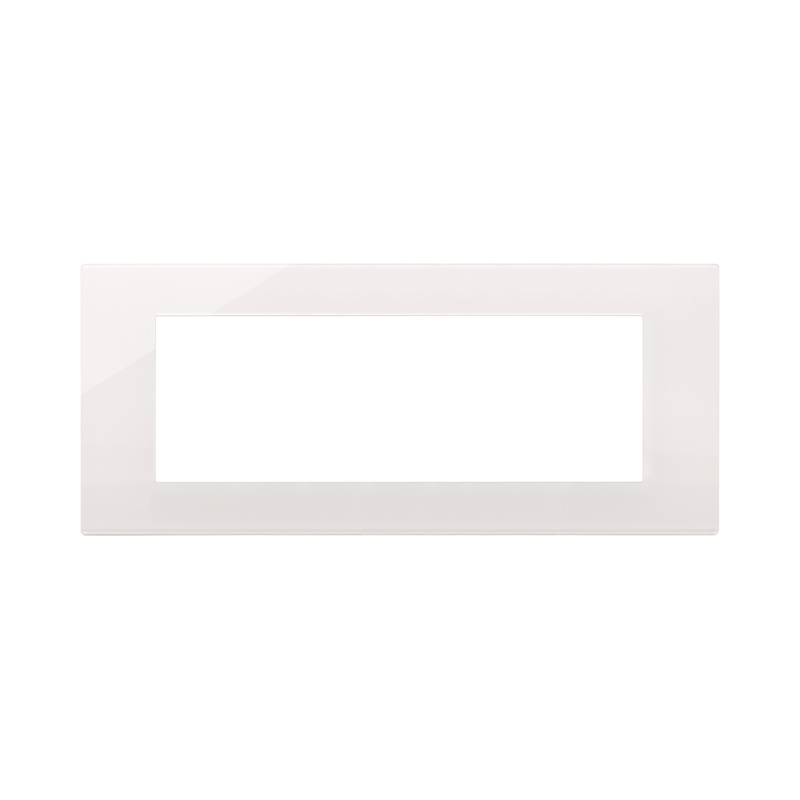 Декоративна рамка 7 модула Reflex White от серия LINEA. Изтънчена визия с ефект "стъкло", която придава дълбочина и съвременен стил. Изработена от боядисан технополимер – лека, устойчива и визуално впечатляваща.
