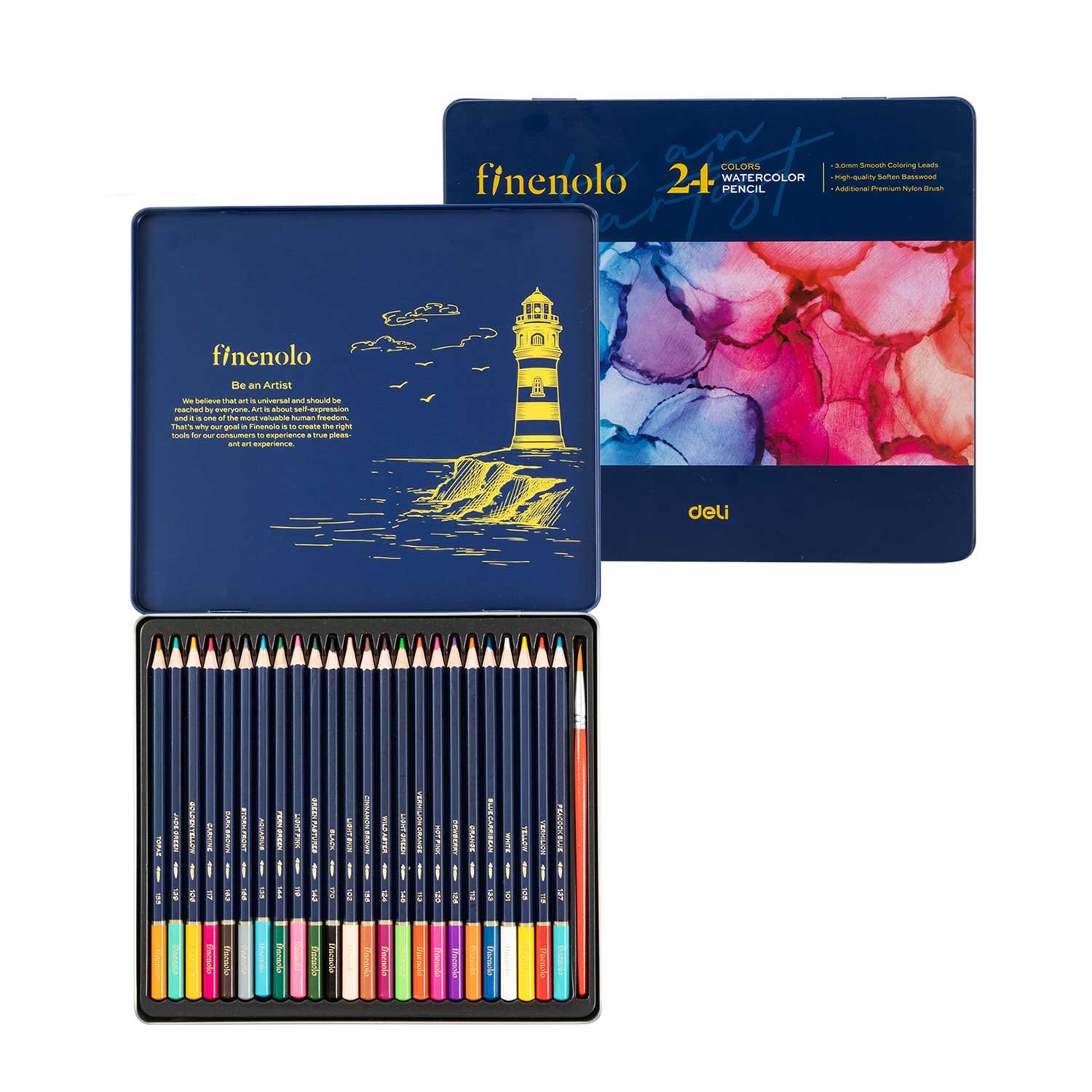 Deli Акварелни моливи Finenolo, 24 цвята, в метална кутия