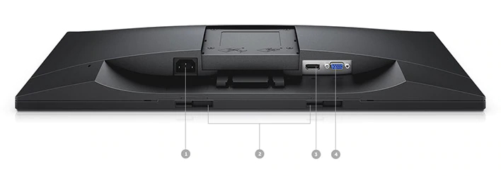 1. Съединител за захранващ кабел | 2. Прорези за монтиране на звукова лента | 3. DisplayPort | 4.