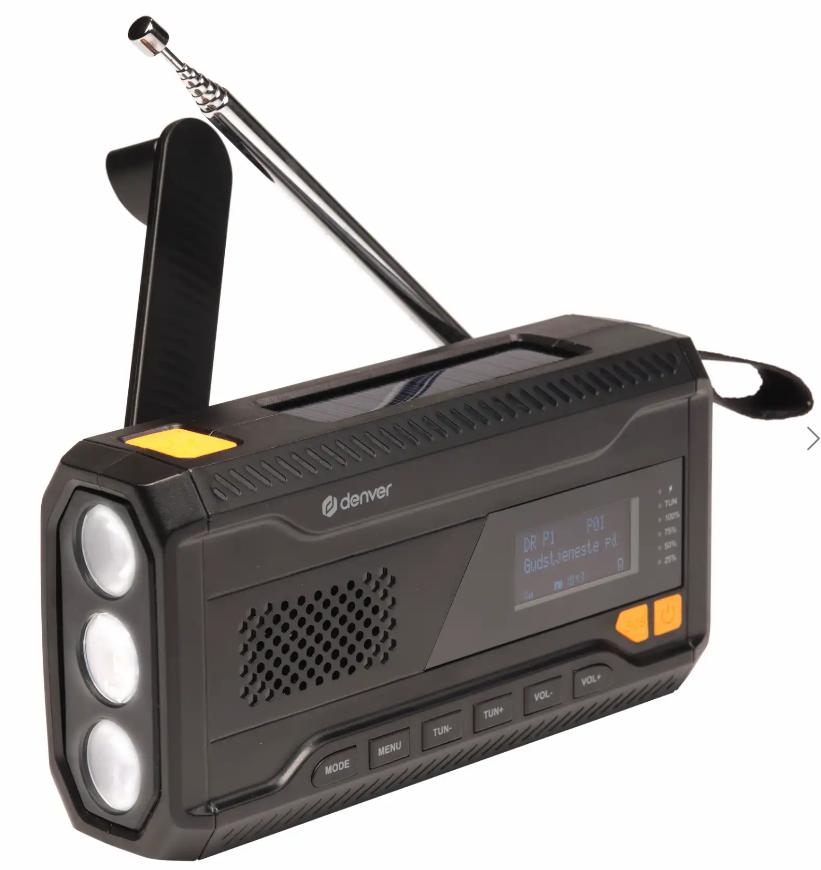 Включва 3W LED фенерче, 2W RMS високоговорител, SOS светлина и LCD екран за лесна работа – идеален за употреба на открито или при извънредни ситуации.