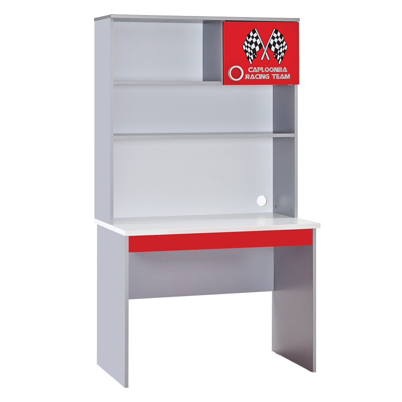Детско бюро с етажерка Turbo Cap, 1000х600х1750 мм, ПДЧ 18мм, сиво и червено