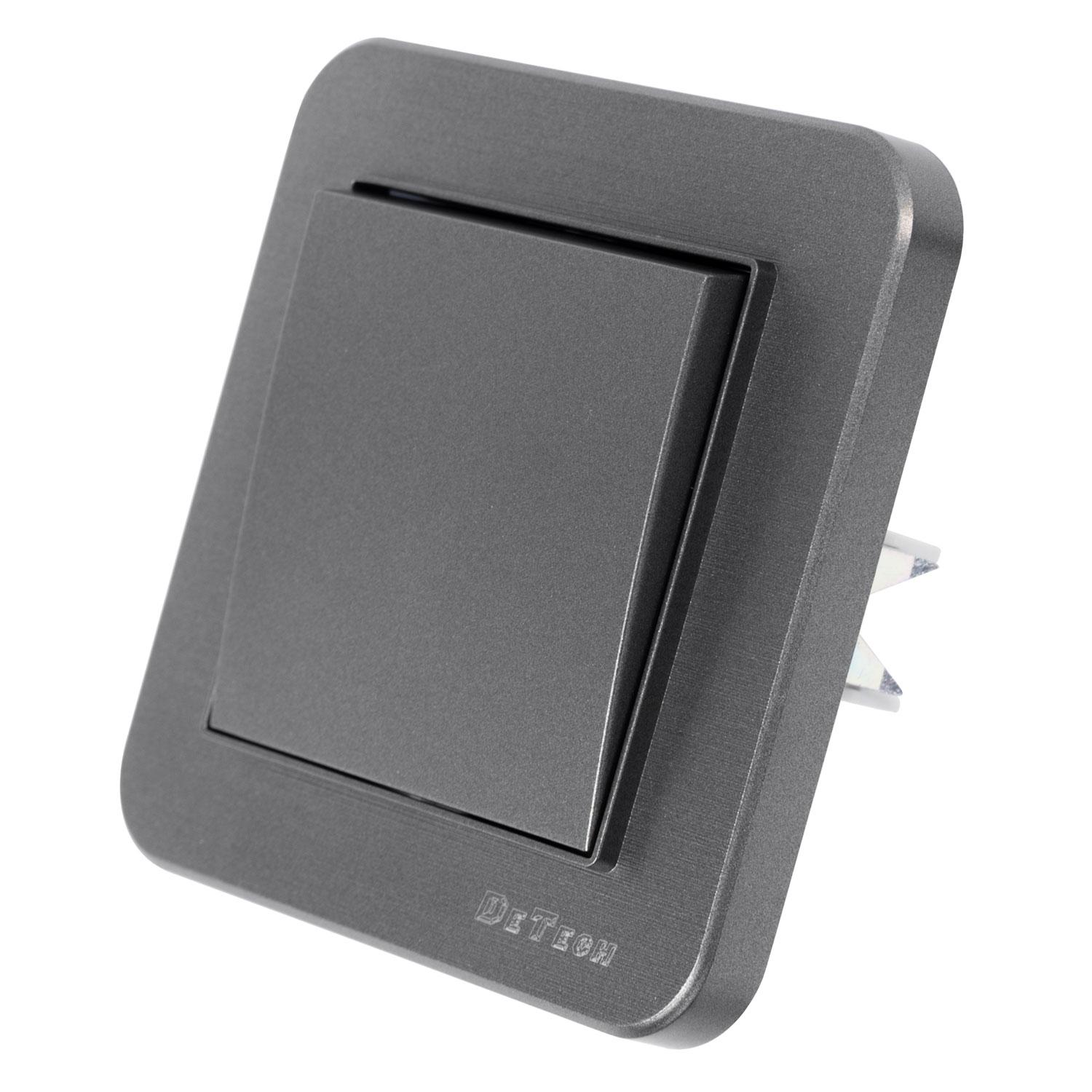 Девиаторен ключ за осветление DeTech DE-9223-31 (схема 6) с декоративна рамка, в сив цвят.