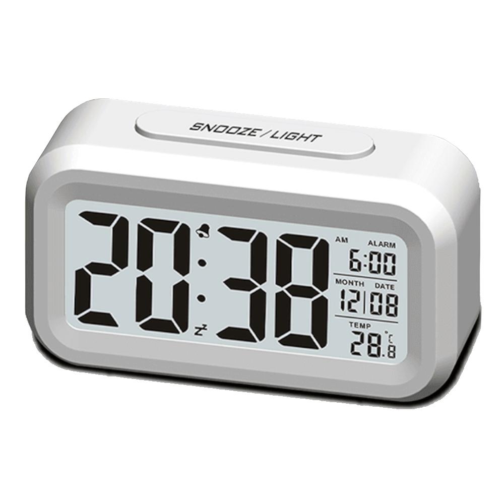 Дигитален часовник с календар, аларма и термометър\n\nПрактичен и стилен дигитален часовник, комбиниращ няколко функции в едно устройство – показва точен час, дата и температура, и разполага с аларма за удобно събуждане. Компактният му размер (13.5 x 7.1 x 4.7 см) го прави идеален за бюро, нощно шкафче или кухня. Елегантният бял цвят пасва на всеки интериор, а ясният дисплей осигурява отлична видимост през деня и нощта.