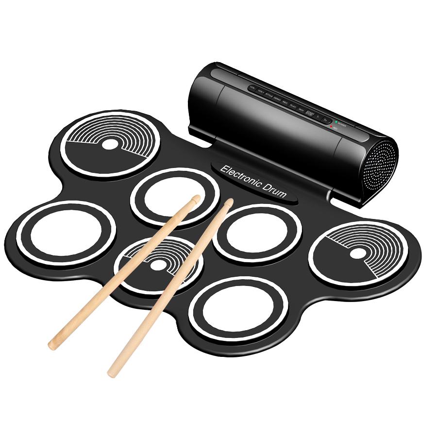 - Сет от електронни барабани, включващ краш чинел, райд чинел, педален чинел (фус), малък барабан, два високи и един нисък том-том.