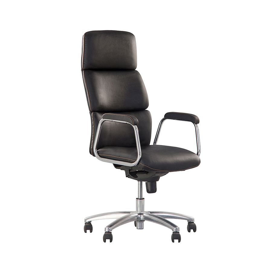 Директорски стол California, естествена кожа, база алуминий, фиксирани подлакътници, черен