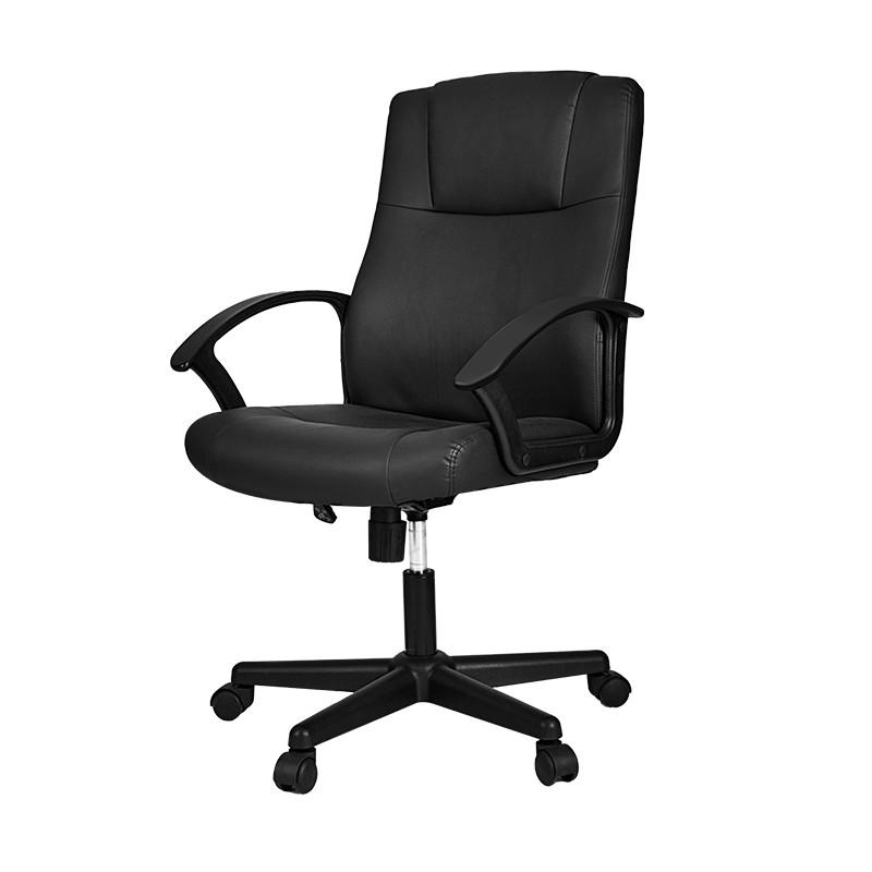 Директорски стол Deli Lioni, фиксирани подлакътници, черна PP база, черна еко кожа