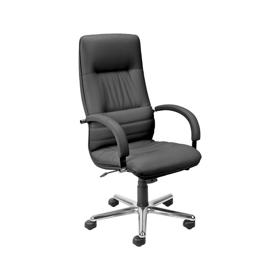 Директорски стол Linea Steel, естествена кожа, база алуминий,  фиксирани подлакътници, черен