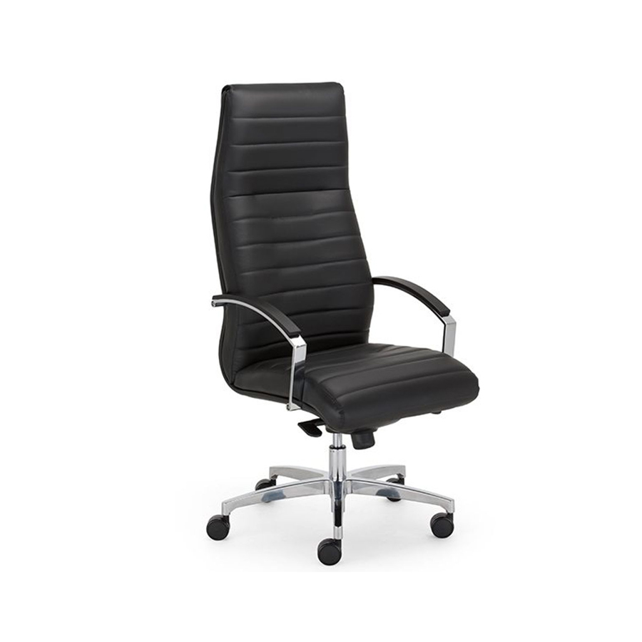 Директорски стол Lynx, естествена кожа, база алуминий, фиксирани подлакътници, черен