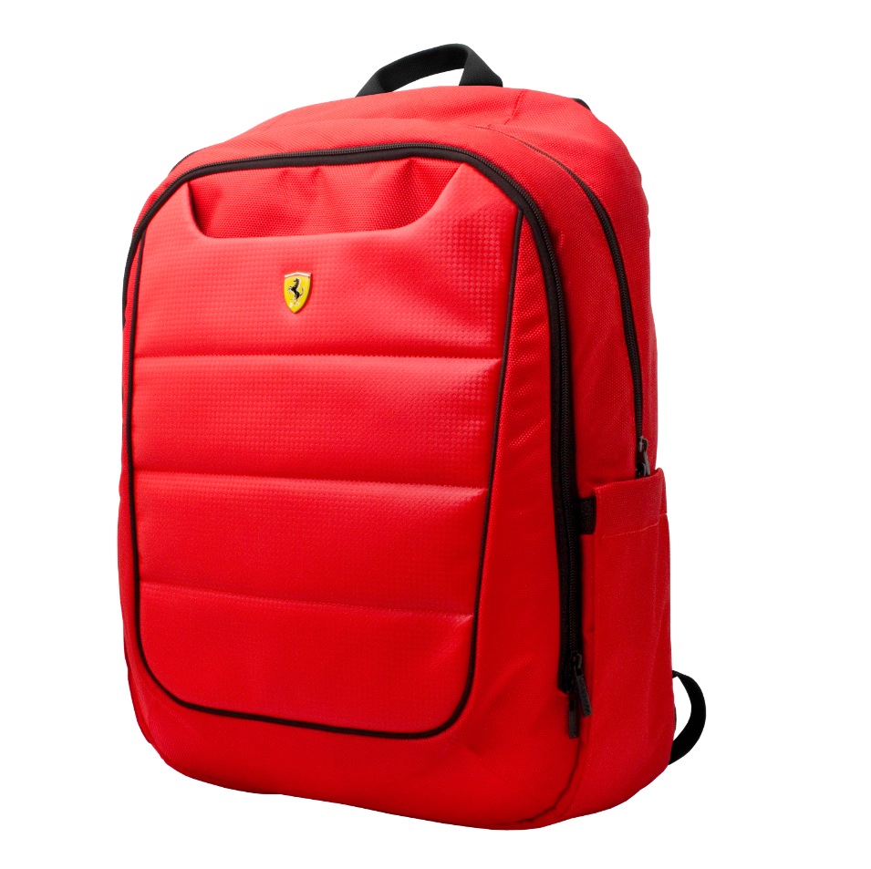 С логото на Ferrari върху предната част на раницата