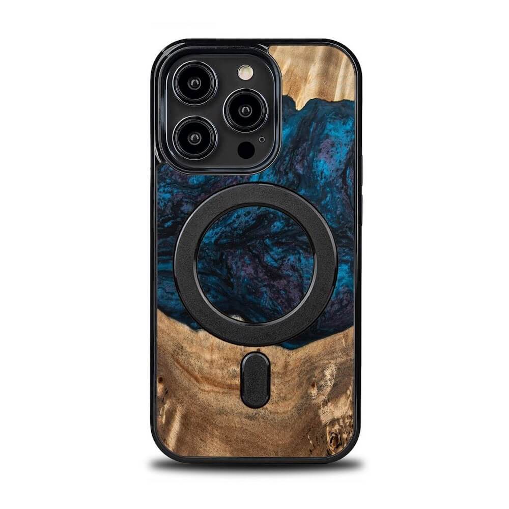 Дизайнерски хибриден (дърво+TPU) кейс с MagSafe за iPhone 14 Pro - Bewood Unique Neptune Wood and Resin MagSafe Case (тъмносин-черен)