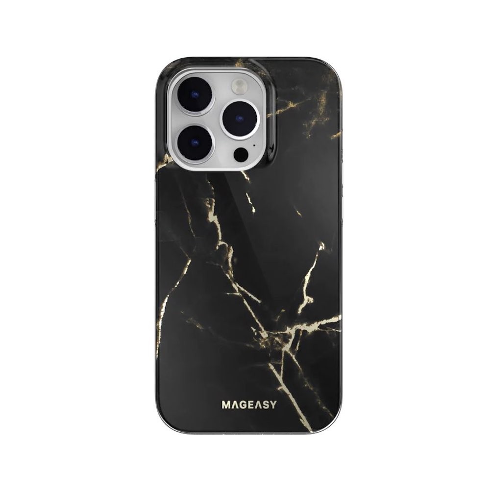 Дизайнерски хибриден удароустойчив кейс с MagSafe за iPhone 14 Pro (черен)  - Mageasy Marble M Case With MagSafe