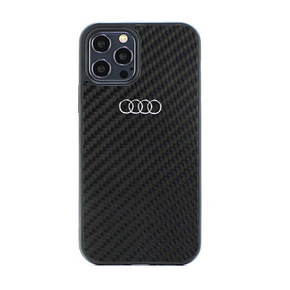 Дизайнерски карбонов кейс за iPhone 12, iPhone 12 Pro - Audi Carbon Fiber Hard Case (черен)