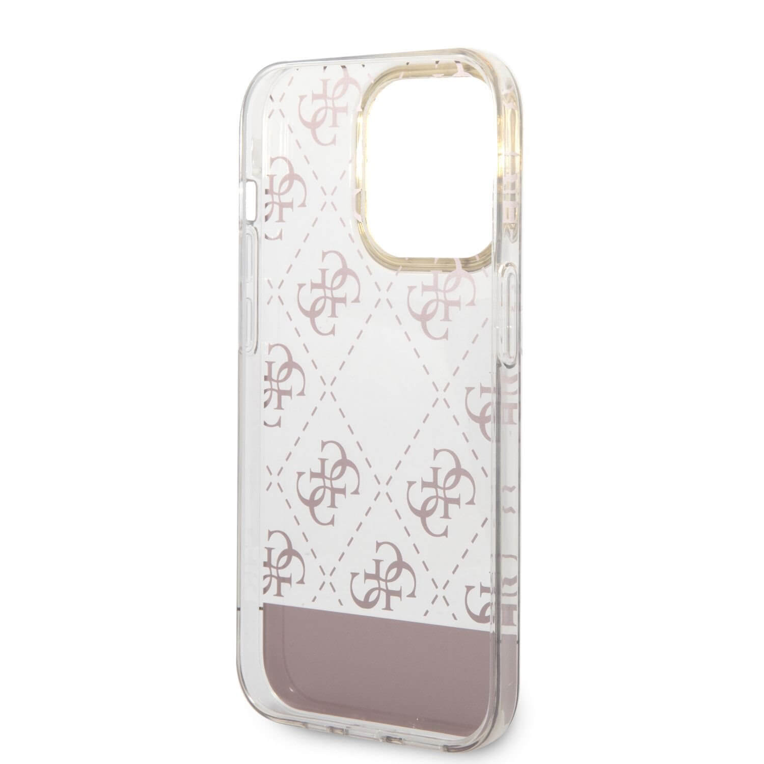 Дизайнерски кейс с висока защита за iPhone 14 Pro - Guess Peony Glitter Script Logo Case (розов)