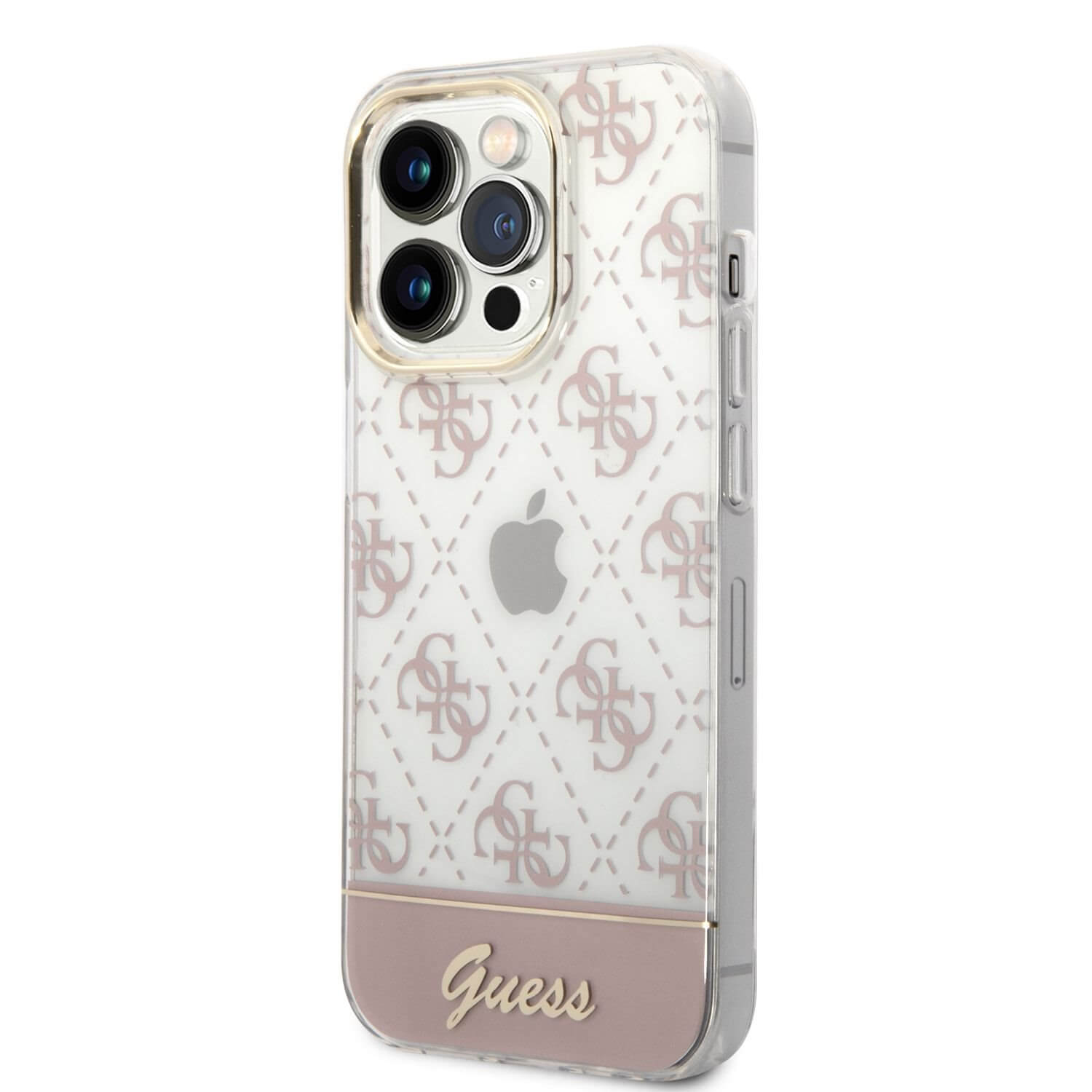 Дизайнерски кейс с висока защита за iPhone 14 Pro Max - Guess Peony Glitter Script Logo Case (розов)
