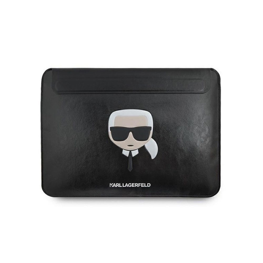Дизайнерски кожен калъф за MacBook Air 13, MacBook Pro 13, MacBook Pro 14 и лаптопи до 14 инча - Karl Lagerfeld Iconic Leather Sleeve Case 14 (черен)