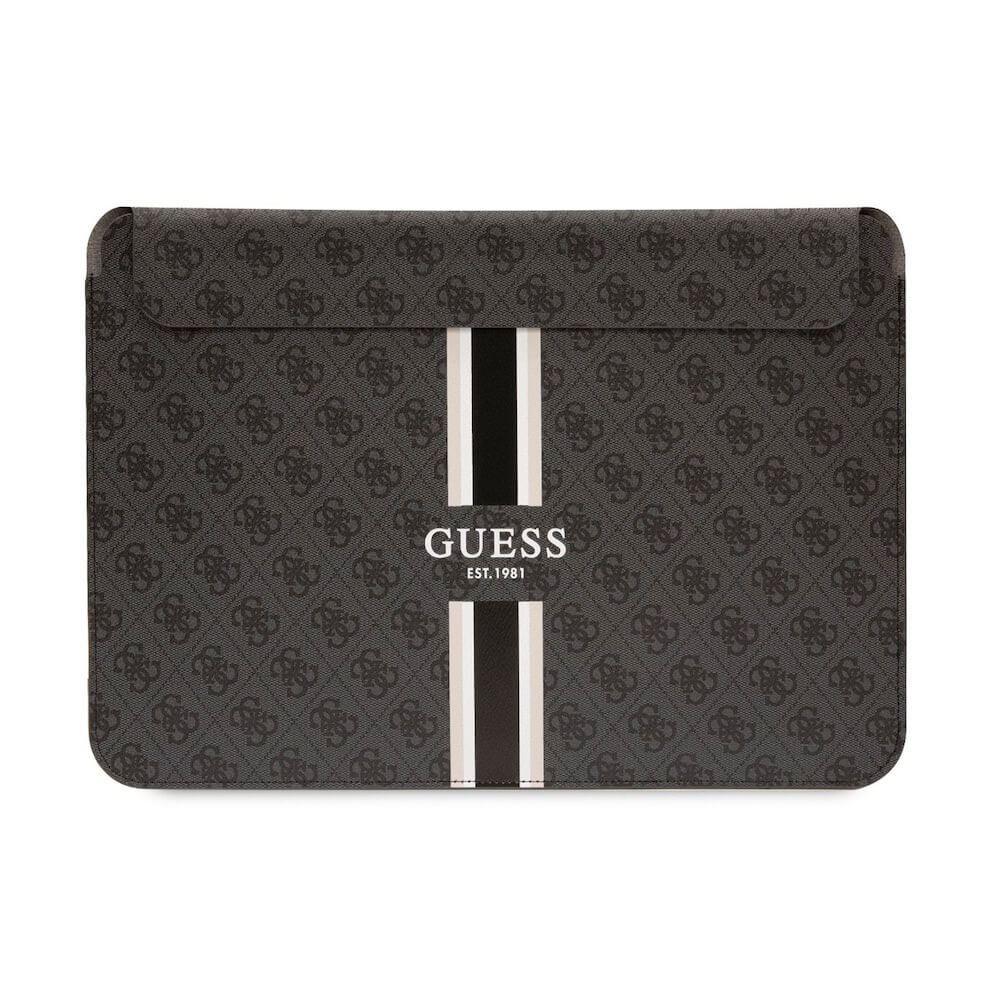 Дизайнерски кожен калъф за MacBook Air 13, MacBook Pro 13, MacBook Pro 14 и лаптопи до 14 инча - Guess PU 4G Printed Stripes Leather Laptop Sleeve 14 (черен)