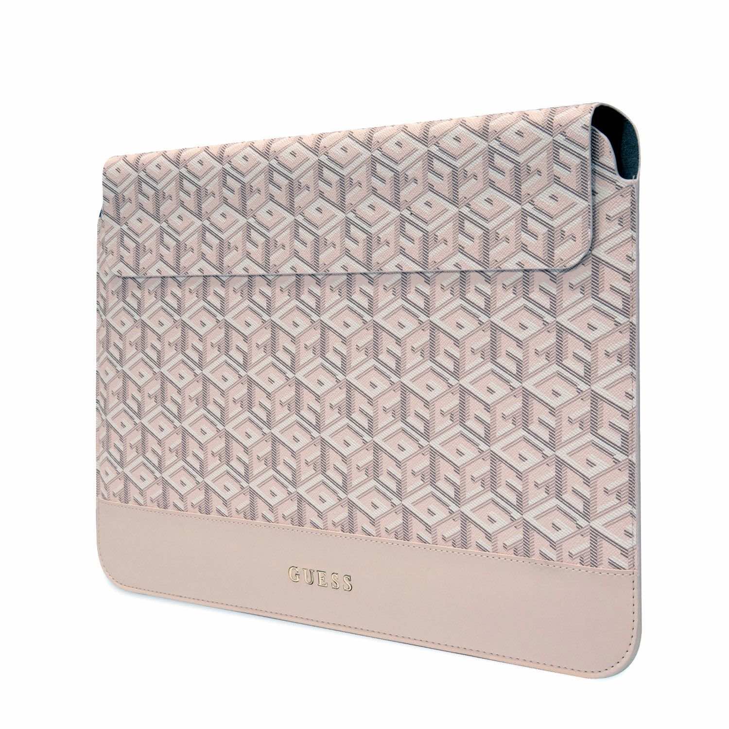 Дизайнерски кожен калъф за MacBook Air 13, MacBook Pro 13, MacBook Pro 14 и лаптопи до 14 инча - Guess PU G Cube Leather Laptop Sleeve 14 (розов)