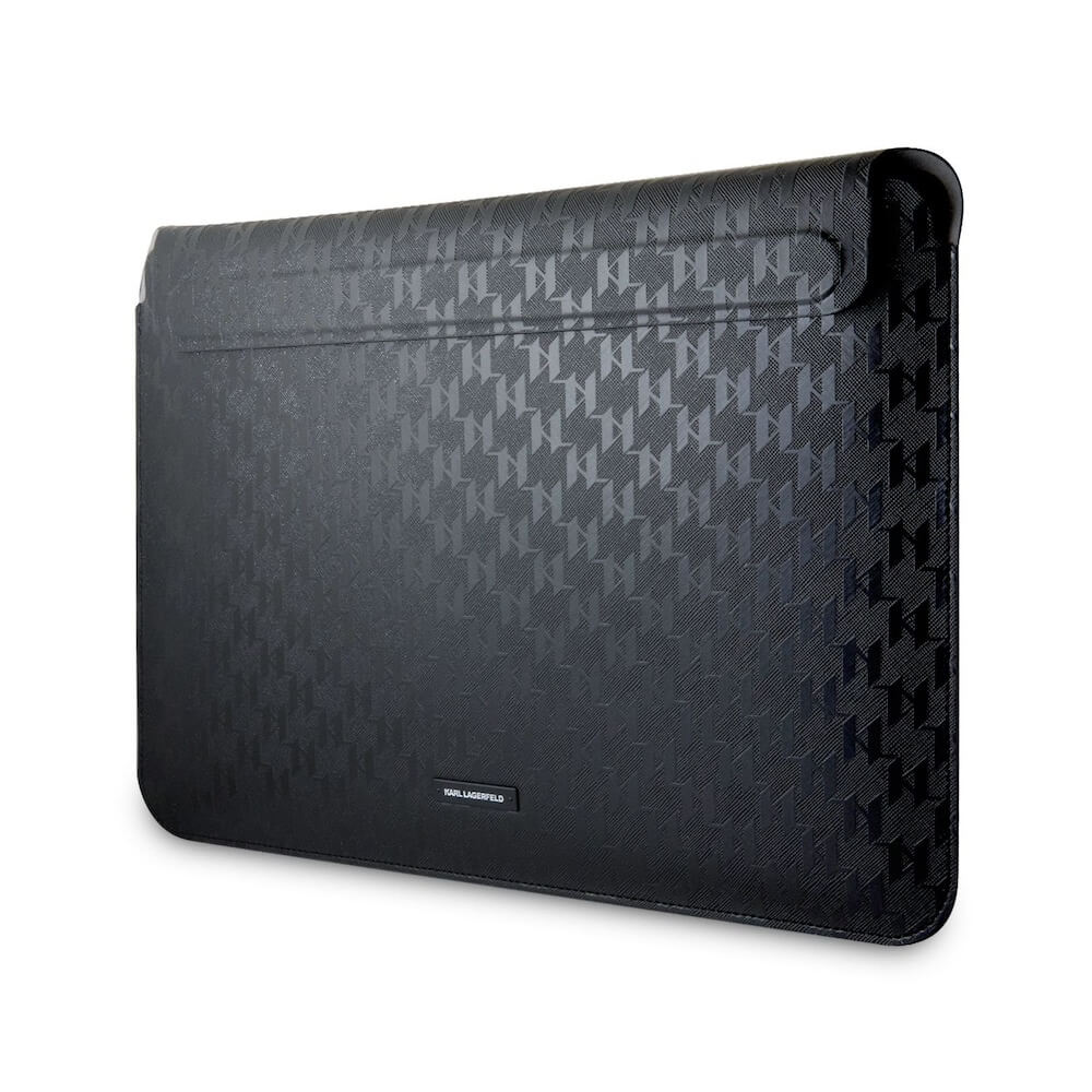 Дизайнерски кожен калъф за MacBook Air 13, MacBook Pro 13, MacBook Pro 14 и лаптопи до 14 инча - Karl Lagerfeld Saffiano Monogram Sleeve 14 (черен)