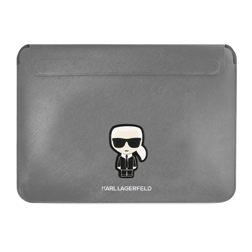 Дизайнерски кожен калъф за MacBook и преносими компютри до 14 инча - Karl Lagerfeld Saffiano Ikonik Leather Laptop Sleeve 14 (сребрист)