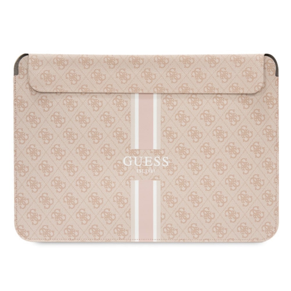 Дизайнерски кожен калъф за MacBook и преносими компютри до 16 инча - Guess PU 4G Printed Stripes Leather Laptop Sleeve 16 (розов)