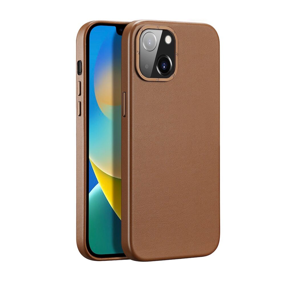 Дизайнерски кожен кейс с MagSafe за iPhone 14 - Dux Ducis Grit Faux Leather MagSafe Case (кафяв)