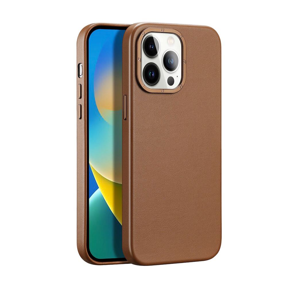 Дизайнерски кожен кейс с MagSafe за iPhone 14 Pro - Dux Ducis Grit Faux Leather MagSafe Case (кафяв)