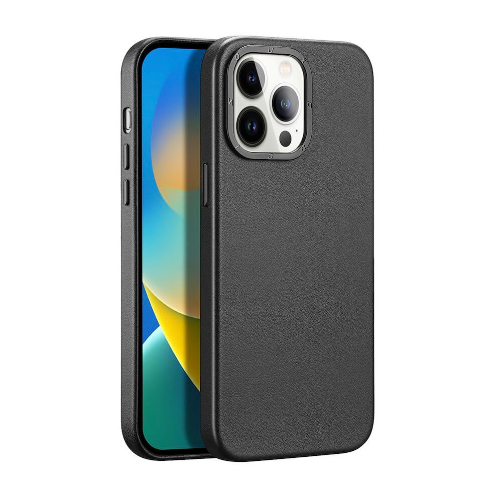 Дизайнерски кожен кейс с MagSafe за iPhone 14 Pro - Dux Ducis Grit Faux Leather MagSafe Case (черен)