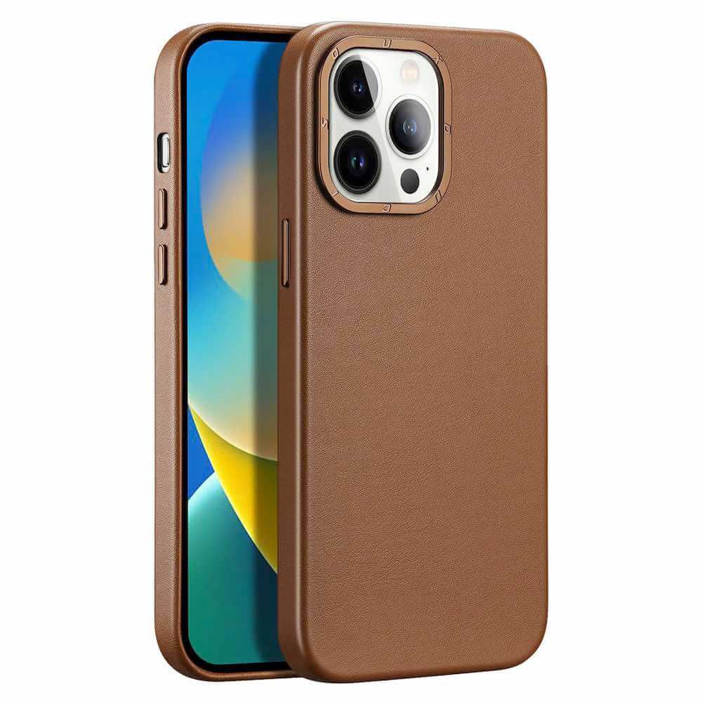 Дизайнерски кожен кейс с MagSafe за iPhone 14 Pro Max - Dux Ducis Grit Faux Leather MagSafe Case (кафяв)