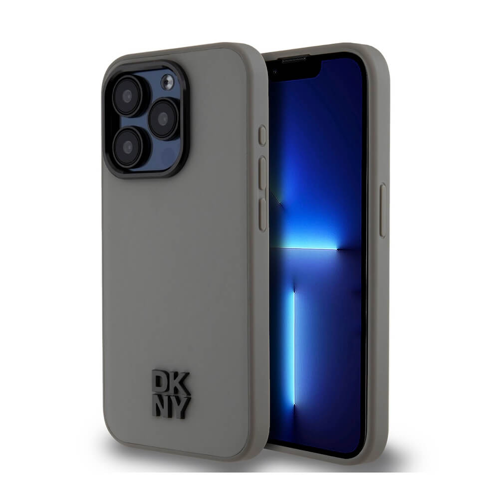 Дизайнерски кожен кейс с MagSafe за iPhone 15 Pro - DKNY Stack Logo MagSafe Leather Hard Case (сив)
