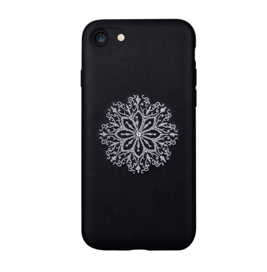 Качествен дизайнерски кожен кейс с ръчно бродирано цвете и покритие от еко кожа за задната част