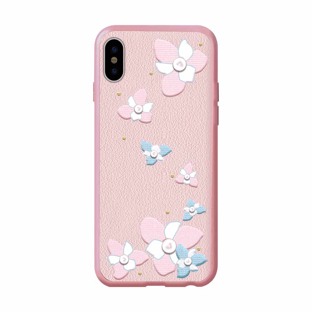 Качествен дизайнерски кожен кейс, облицован с еко кожа и с ръчно бродирано цвете