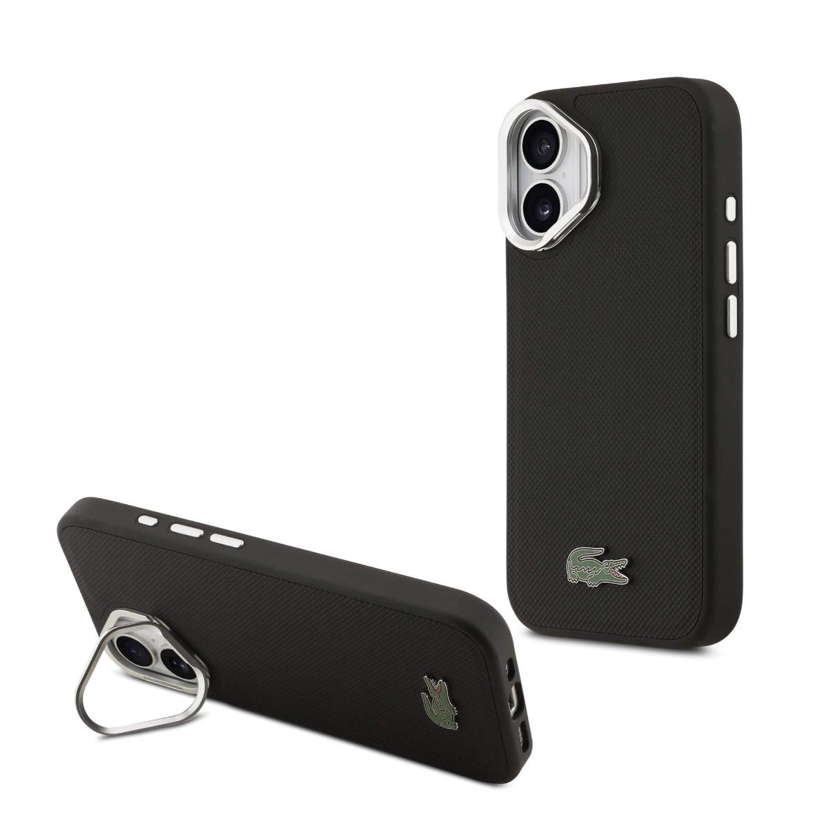 Дизайнерски кожен кейс с вградена поставка и MagSafe за iPhone 17 - Lacoste Iconic Petit Pique Camera Stand MagSafe Case (черен)