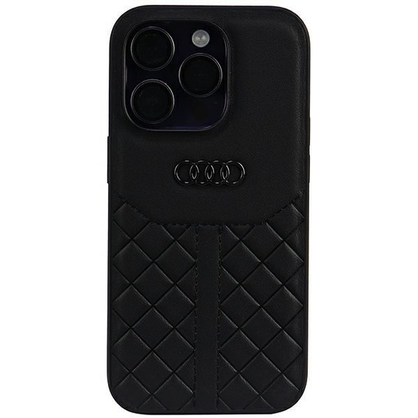 Дизайнерски кожен кейс за iPhone 14 Pro - Audi Genuine Leather Case (черен)