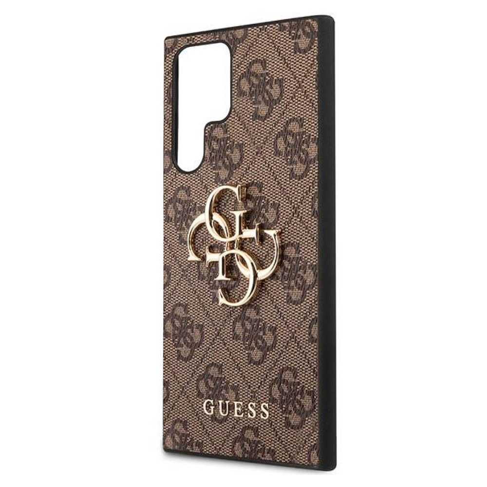 Дизайнерски кожен кейс за Samsung Galaxy S23 Ultra - Guess Saffiano 4G Metal Logo Leather Hard Case (кафяв)