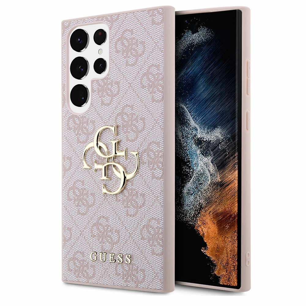 Дизайнерски кожен кейс за Samsung Galaxy S24 Ultra - Guess PU 4G Metal Logo Leather Hard Case (розов)