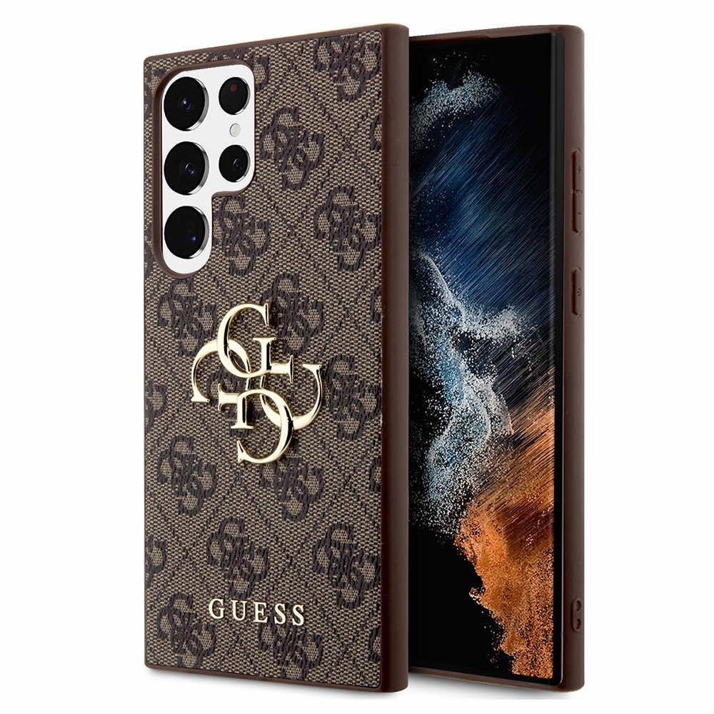 Дизайнерски кожен кейс за Samsung Galaxy S24 Ultra - Guess PU 4G Metal Logo Leather Hard Case (кафяв)