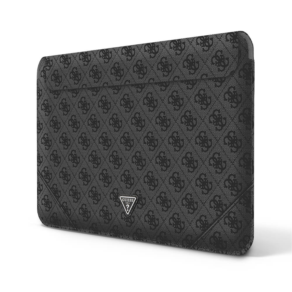 Дизайнерски луксозен кожен калъф за MacBook Air 13, MacBook Pro 13, MacBook Pro 14 и лаптопи до 14 инча - Guess 4G Triangle Metal Logo Notebook Sleeve (черен)