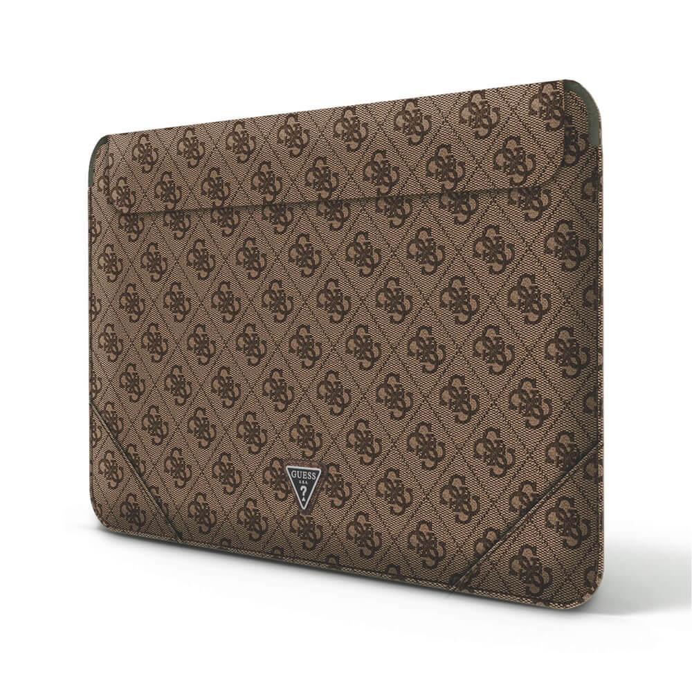 Дизайнерски луксозен кожен калъф за MacBook Pro 16, MacBook Pro 15 и лаптопи до 16 инча - Guess 4G Triangle Metal Logo Notebook Sleeve (кафяв)