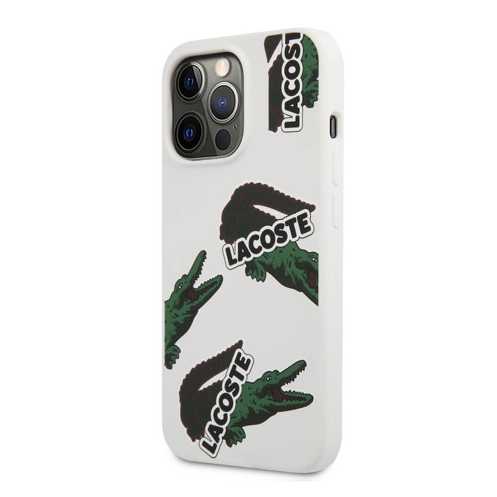 Дизайнерски силиконов калъф за iPhone 13 Pro (бял)  - Lacoste Liquid Silicone Glossy Allover Pattern Case