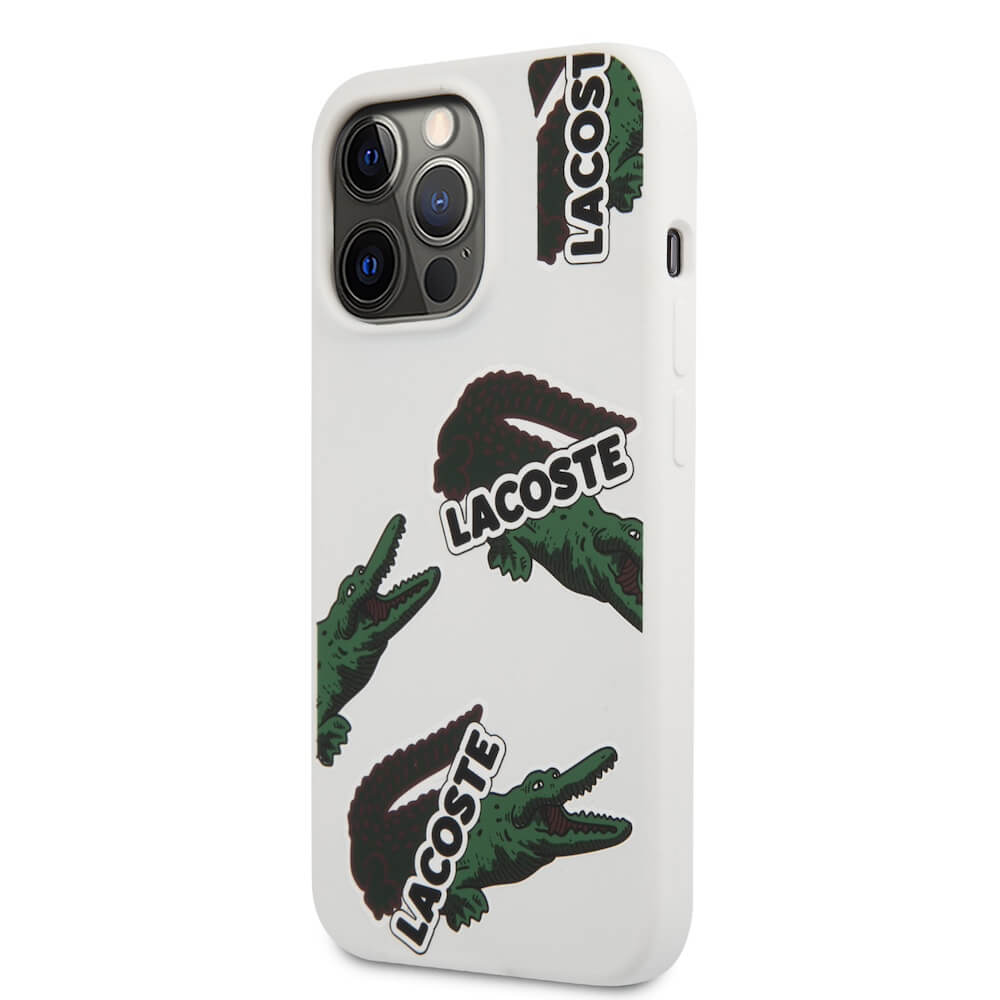 Дизайнерски силиконов калъф за iPhone 13 Pro Max (бял)  - Lacoste Liquid Silicone Glossy Allover Pattern Case