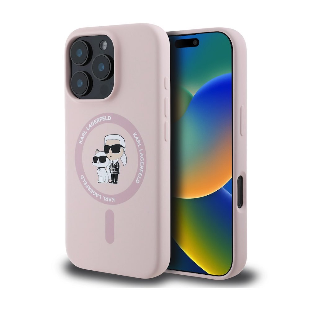 Дизайнерски силиконов кейс с MagSafe за iPhone 16 Pro - Karl Lagerfeld Liquid Silicone Karl and Choupette MagSafe Case (розов)
