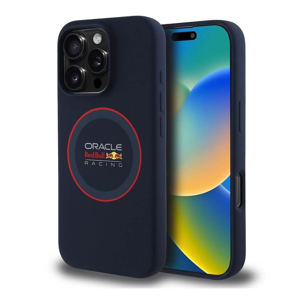 Дизайнерски силиконов кейс с MagSafe за iPhone 16 Pro - Red Bull Liquid Silicone Red Ring MagSafe Case (тъмносин)