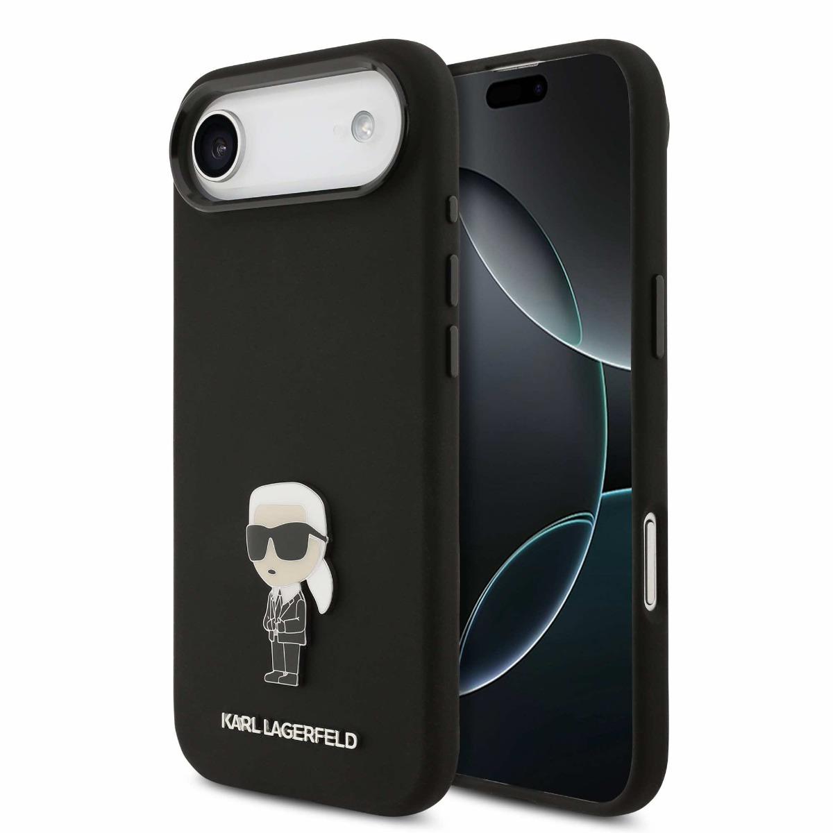 Дизайнерски силиконов кейс с MagSafe за iPhone 17 Air - Karl Lagerfeld Liquid Silicone Metal Ikonik Case (розов)