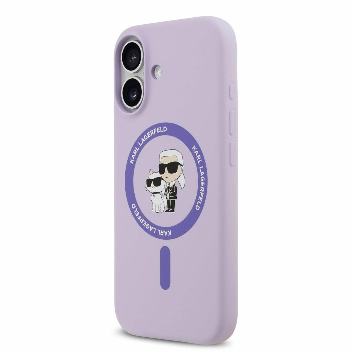 Дизайнерски силиконов кейс с MagSafe за iPhone 17 - Karl Lagerfeld Liquid Silicone Karl and Choupette MagSafe Case (лилав)