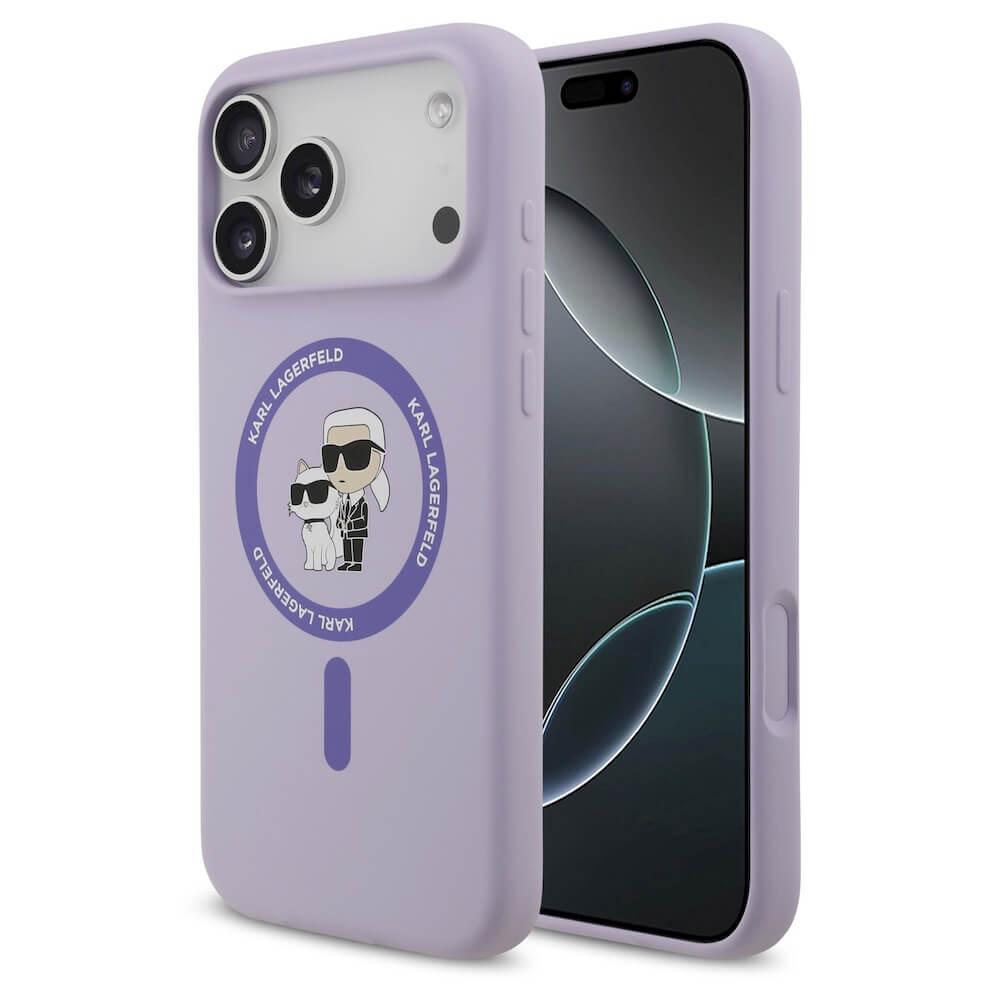 Дизайнерски силиконов кейс с MagSafe за iPhone 17 Pro Max - Karl Lagerfeld Liquid Silicone Karl and Choupette Heads MagSafe Case (лилав)