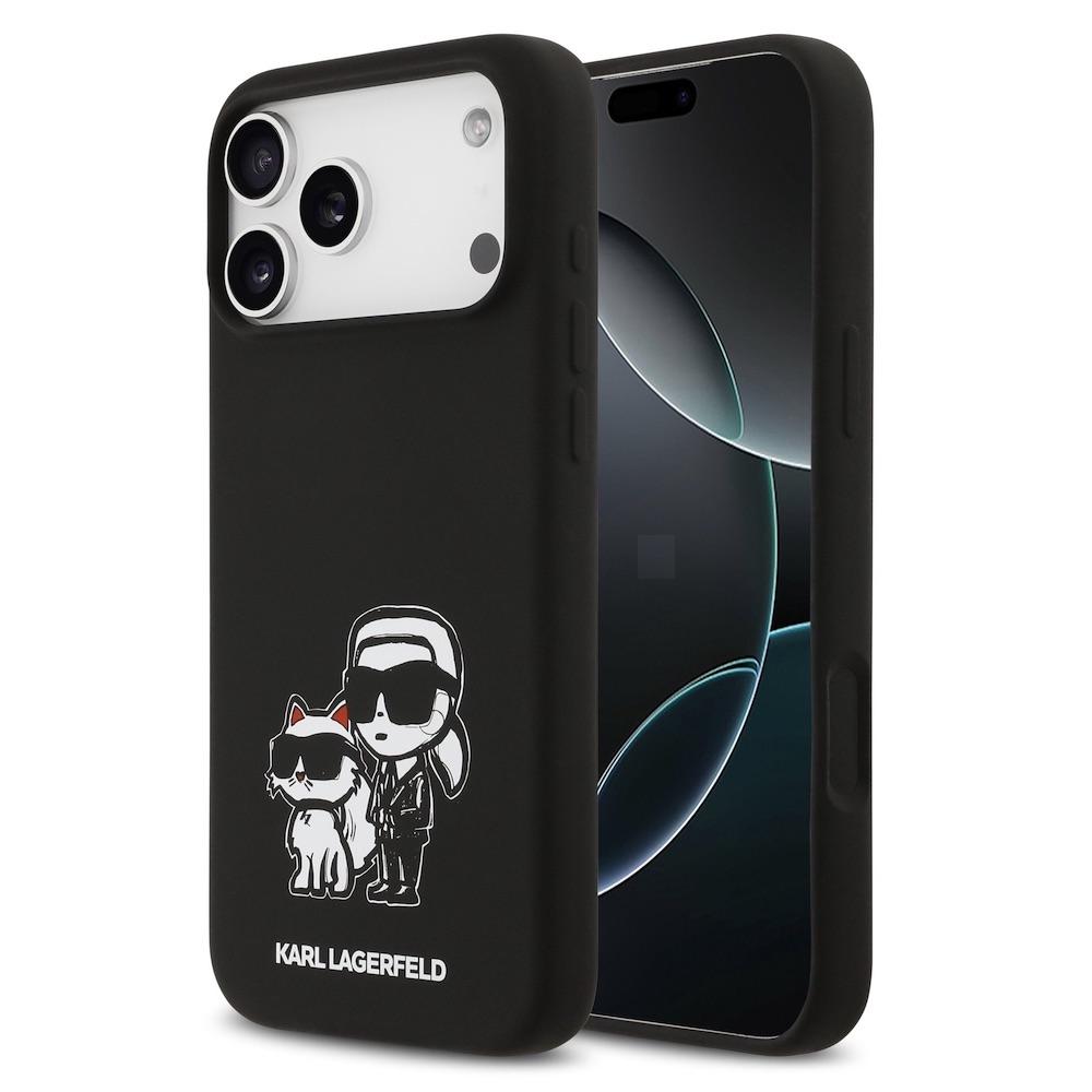 Дизайнерски силиконов кейс с MagSafe за iPhone 17 Pro Max - Karl Lagerfeld Liquid Silicone Sketch Karl and Choupette MagSafe Case (черен)