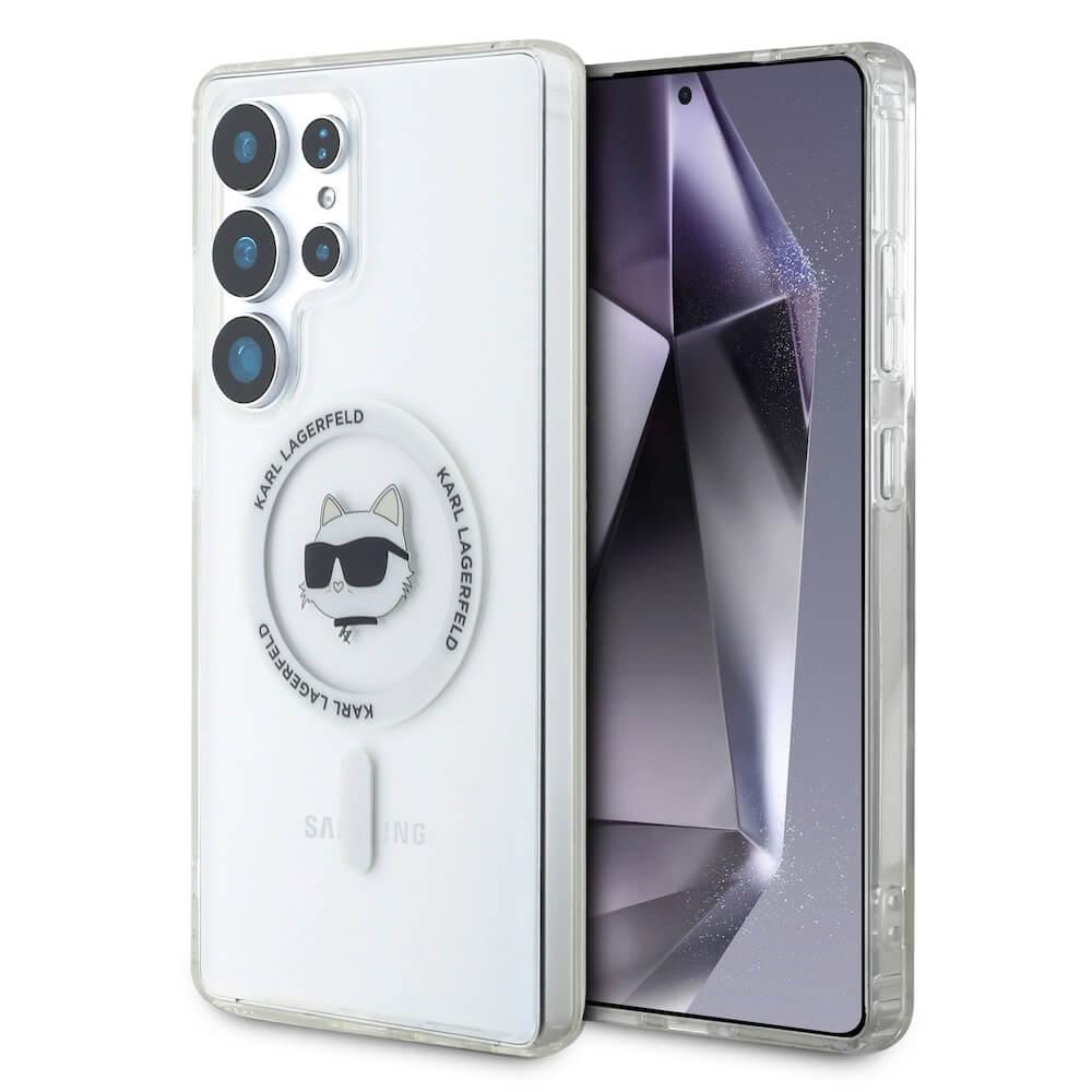 Дизайнерски силиконов кейс с MagSafe за Samsung Galaxy S25 Ultra - Karl Lagerfeld IML Choupette Head MagSafe Case (прозрачен)